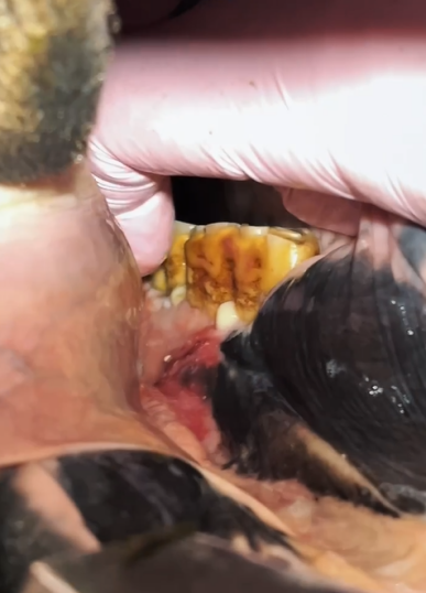 Когда лошадь поступает на лечение с выраженным отеком и инфекцией, это состояние требует незамедлительных действий, включая диагностику и хирургическое вмешательство (например, удаление зуба, сиквестра - это в свою очередь может занимать длительное время, установку дренажа и ежедневные санации).